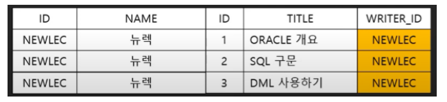 FROM MEMBER M INNER JOIN NOTICE N ON M.ID = N.WRITER_ID;