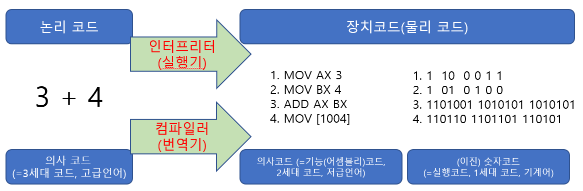 컴파일러와 인터프리터는 사람이 이해할 수 있는 고급언어로 작성된 소스 코드를 기계가 이해할 수 있는 기계어로 번역한 후에 프로그램을 실행하는 것입니다.