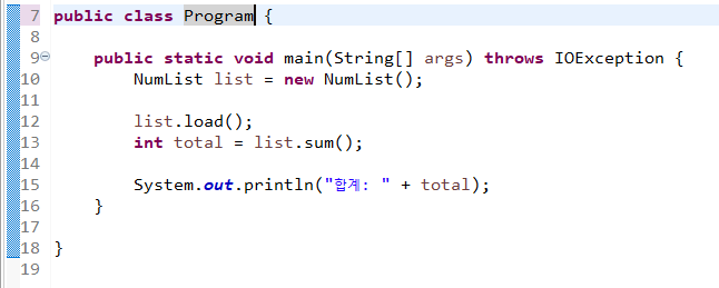 자 NumList 클래스를 객체지향스럽게 바꿨으니 Program도 바꿔봐야겠죠?