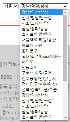 '서울'을 선택했을 때 오른쪽 select box의 option은 총 15개가 있습니다.