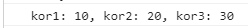 kor, eng, math 변수에 30, 40, 50을 넣고 싶다면 다음과 같이 접근했습니다.