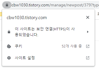 HTTPS 사이트는 주소창에 자물쇠 표시를 클릭하면 확인할 수 있습니다.