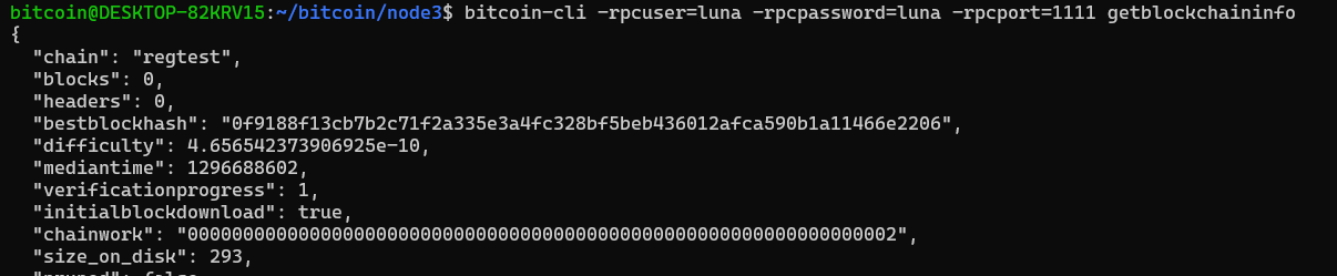 현재는 아래 사진처럼 같이 regtest 네트워크에서 3개의 노드들이 실행되고 있는 상태이다.