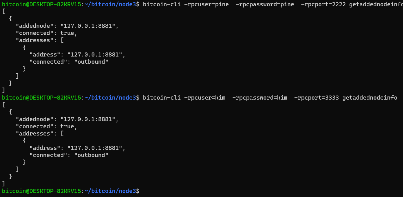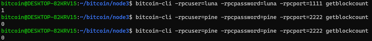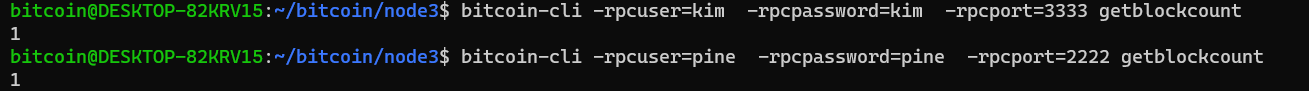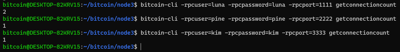각각의 conf 파일이 위치하는 경로는 /home/bitcoin/bitcoin/node1, /home/bitcoin/bitcoin/node2, /home/bitcoin/bitcoin/node3 이다.