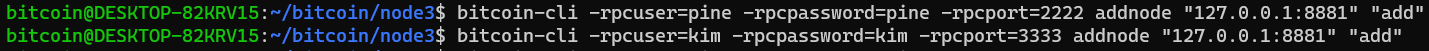 3개의 노드를 만들 때는 2, 3 번째 노드부터 addnode 명령어를 사용하여 다른 노드를 추가할 수 있다.